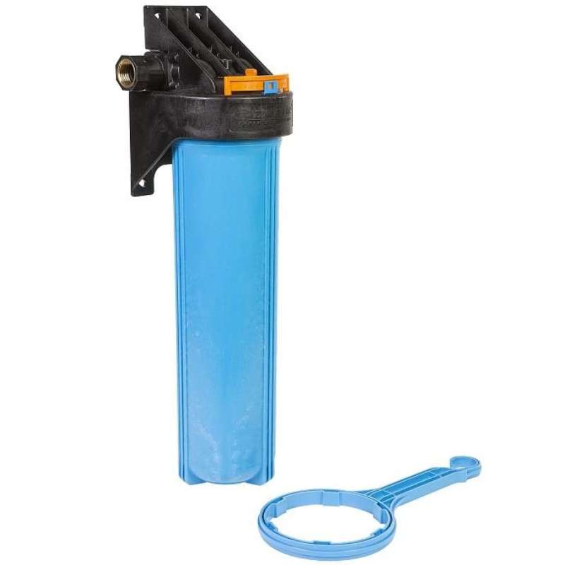 Предназначен для размещения в нём картриджей или фильтрующей засыпки для дальнейшей очистки холодной воды в бытовых условиях. Изготавливается из армлена, прочного материала устойчивого к циклическим нагрузкам и не пропускающего ультрафиолетовые лучи сквозь корпус.Типоразмер колбы - BigBlue20”. Поворот коллектора на 180° позволяет установить корпус фильтра в магистраль, с направлением движения воды, как слева направо, так и справа налево. Магистральную трубу можно разместить вплотную к стене. Кронштейн является одним целым с крышкой корпуса фильтра.