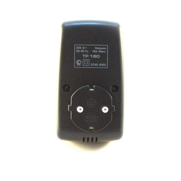 Термостат включается в стандартную розетку европейского образца типа F с заземлением.Аналогичная розетка, расположенная на его корпусе, служит для подключения нагревательного оборудования до 3,5 кВт. Установка необходимых параметров осуществляется с помощью клавиш «+» и «-».